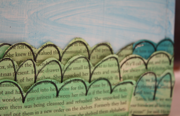 remember that old book I altered that got me all these book pages? now they are green grass...